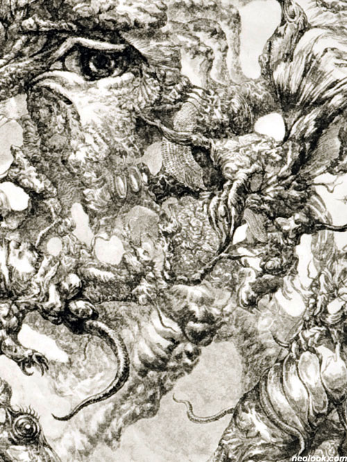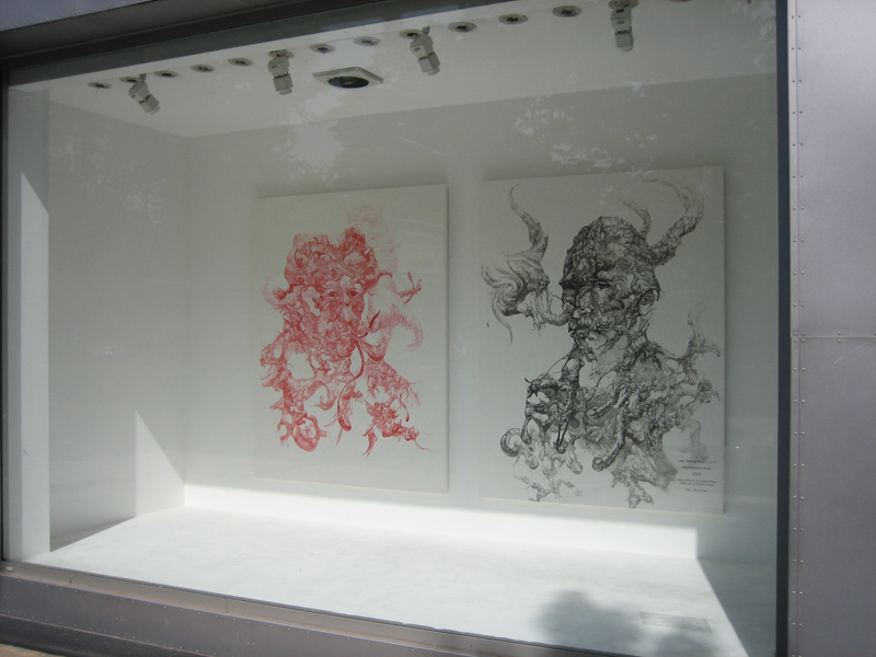 It infiltrates viruses into images of masterpieces, which possessed settled and rule-like power. This virus is a mysterious being beyond somewhere my consciousness and this life starts to invade and proliferate into the masterpiece though my hand. Through the proliferation, this unknown life intervenes an existing order and mutants into an odd and alien feature, and this autonomous life breaths with disguised authority. ■ LEESEUNGHYUN